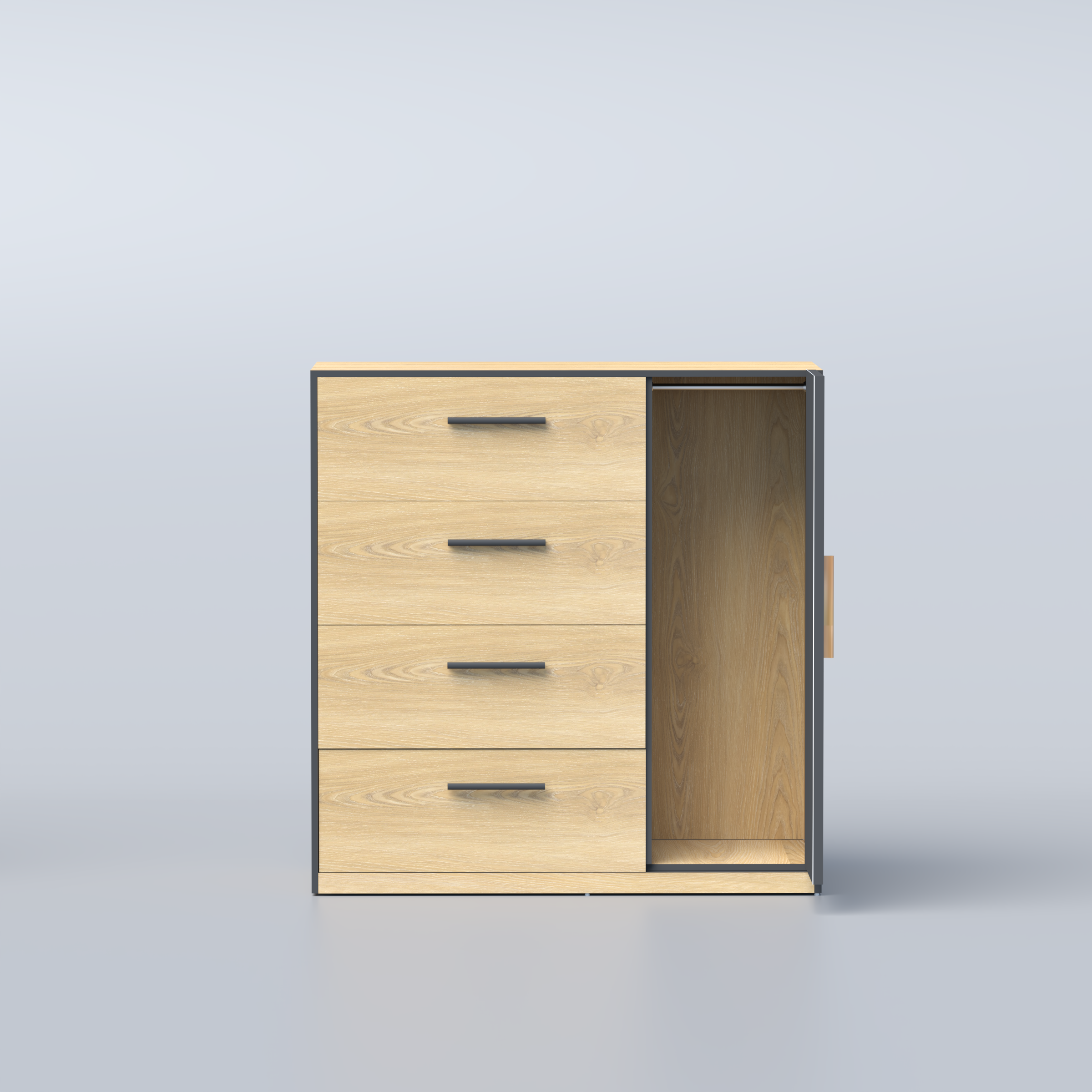 More than just a functional furniture piece, the CANOPY Wardrobe is designed to bring balance, order, and elegance into your living space. Carefully crafted to harmonize aesthetics with practicality, it provides spacious and intelligently planned storage that keeps your belongings neatly organized while maintaining a sleek and visually refined presence. The smooth laminated surface enriches its natural warmth, creating a seamless fusion of style and functionality while ensuring effortless maintenance for everyday use.