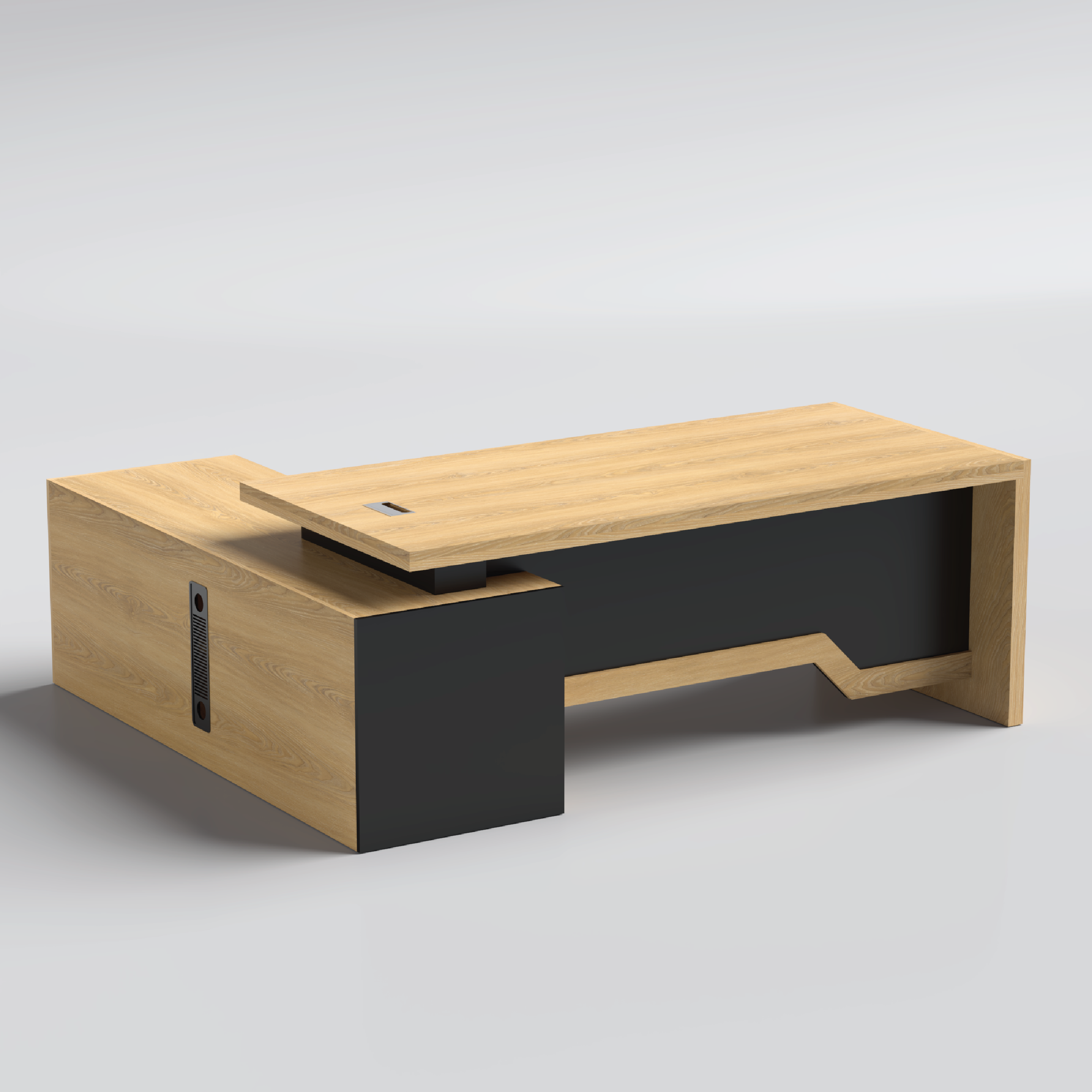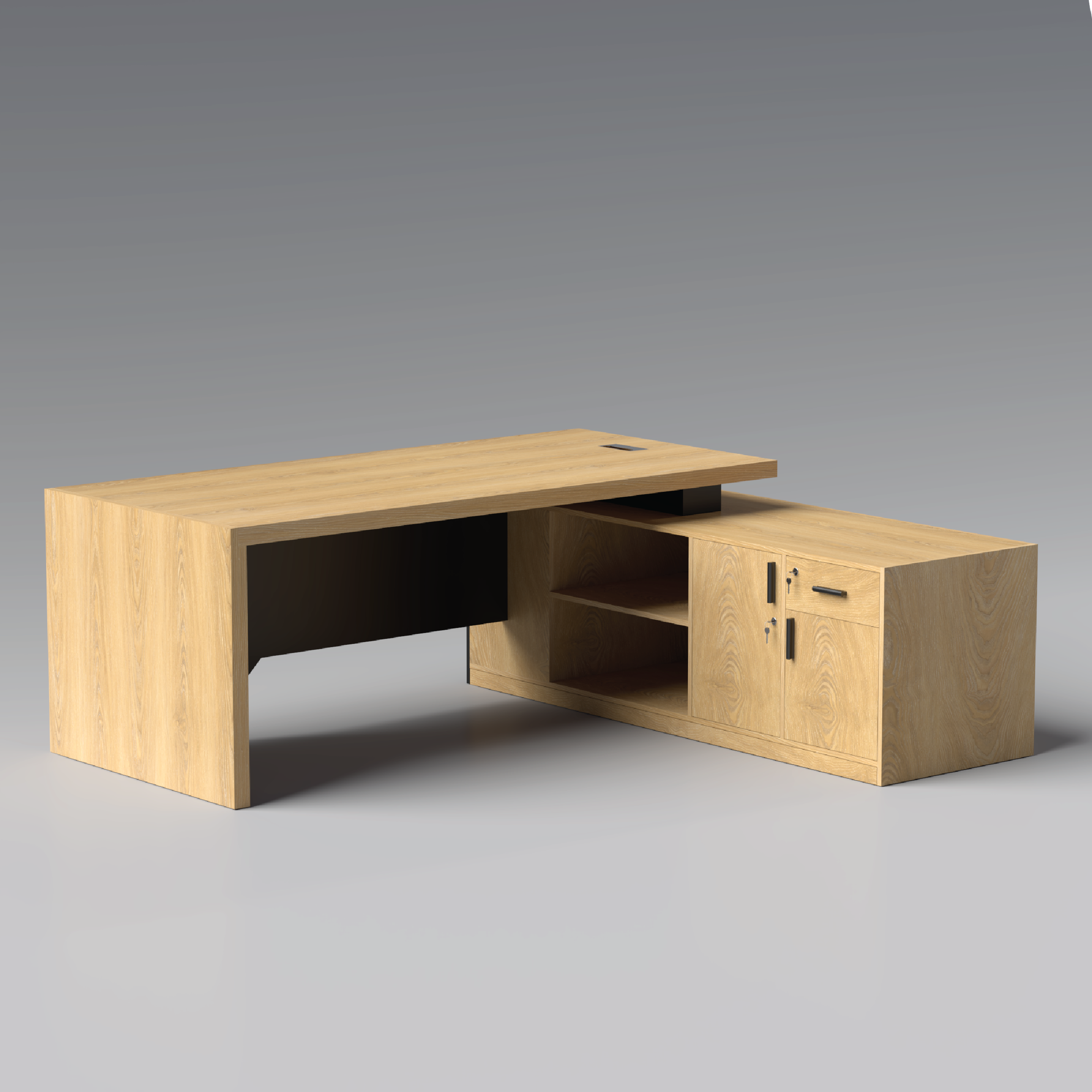 A budget‑friendly L‑shaped executive desk designed for compact offices that prioritize functionality and longevity. The melamine finish protects from scratches and moisture, while the efficient layout supports high‑output daily work.