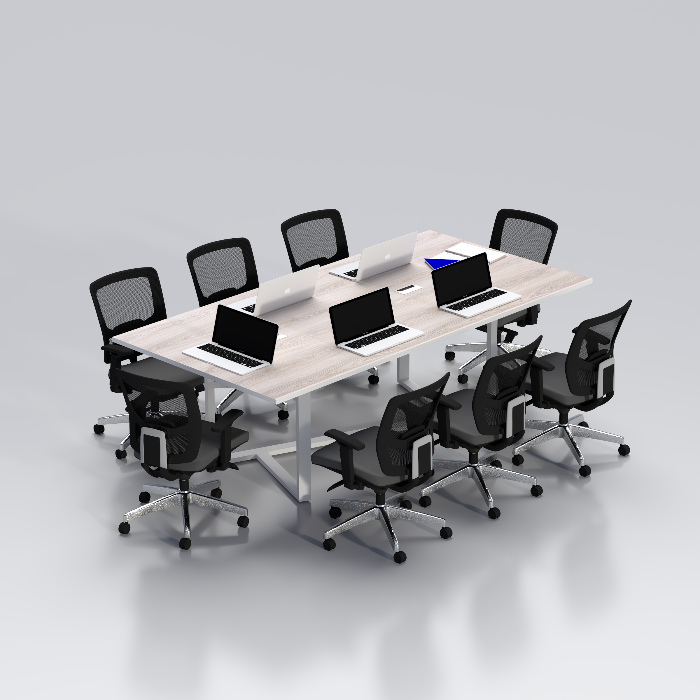 Spacious meeting surface provides ample room for laptops, documents, and presentation materials.