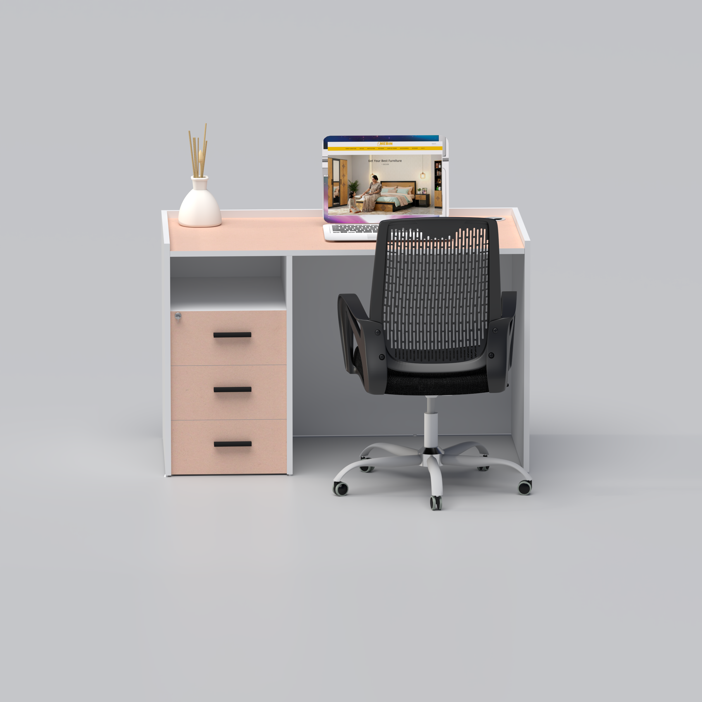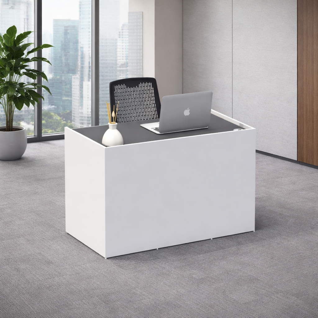 A premium executive L-shape office desk with extended side workspace for enhanced productivity. Ideal for office executives, managers, reception counters and commercial interior applications. Storage pedestal supports organized workflow.