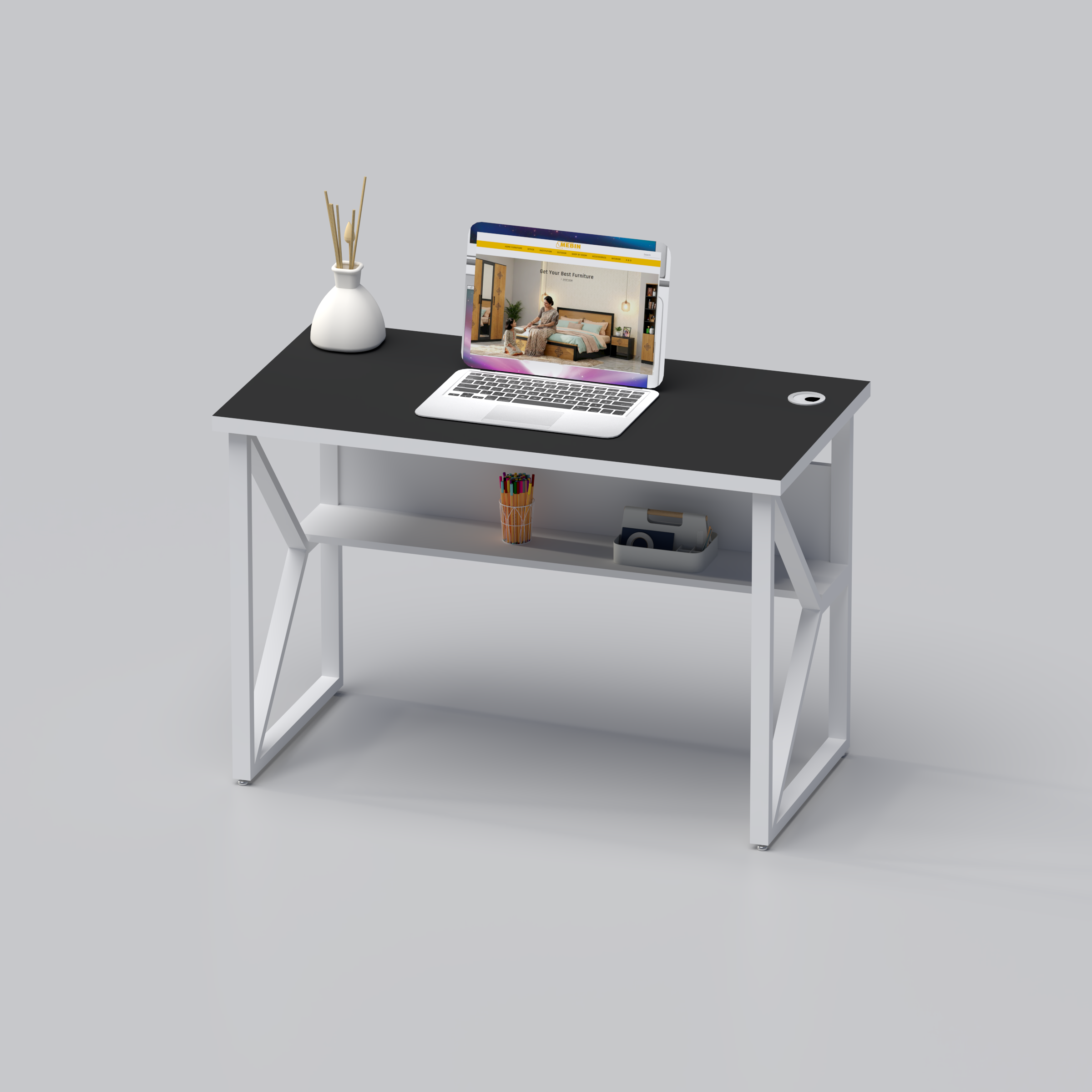 ✔ Additional lower shelf for books/documents