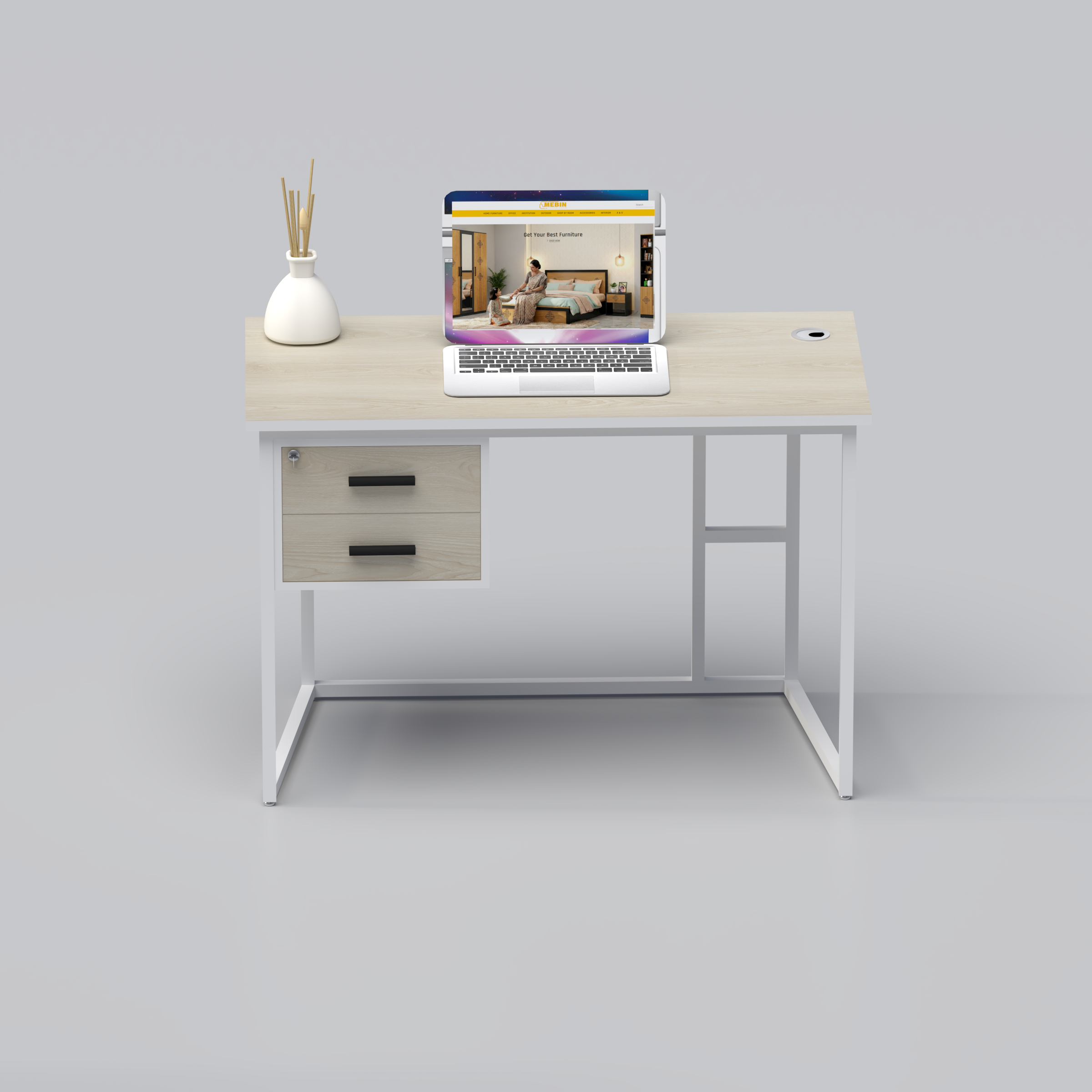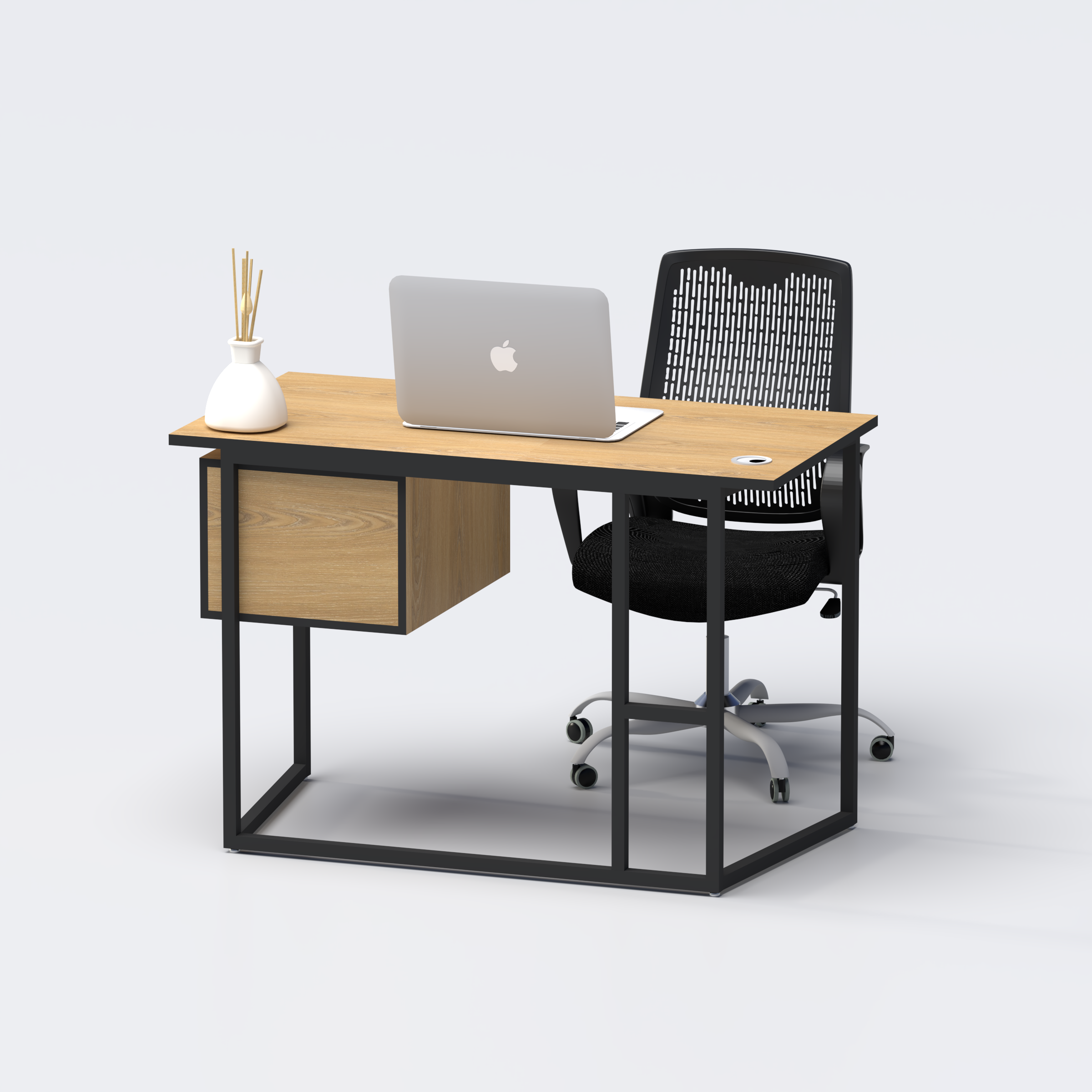 Sleek modern executive workstation with drawer storage and open-leg metal frame base. Ideal for architectural firms, IT setups, executive rooms and premium study workspaces. Offers elegance with practicality.