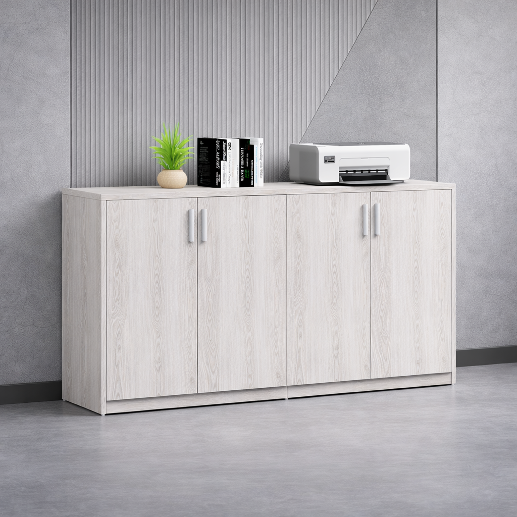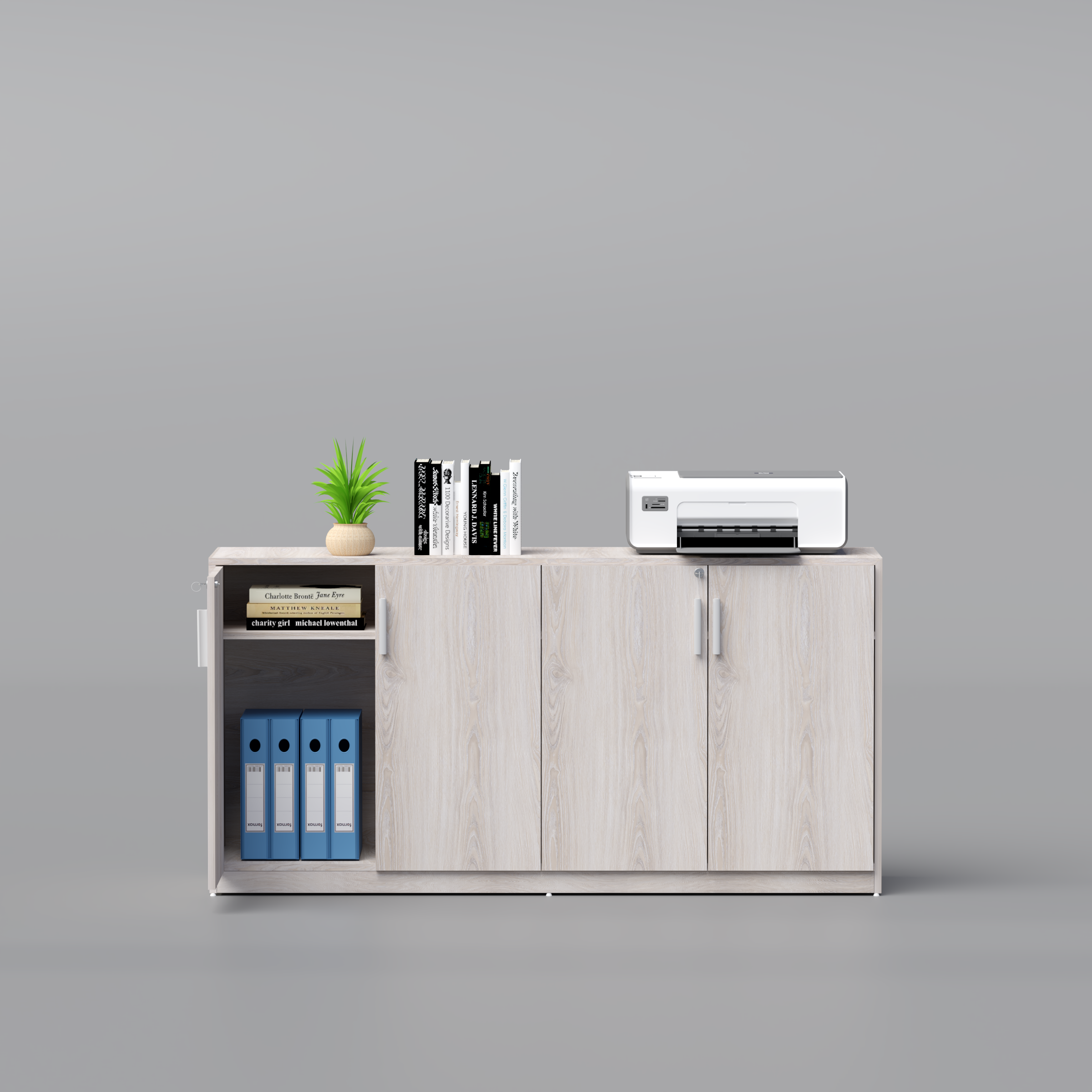 Its extended horizontal profile creates a sense of calm continuity, echoing the rhythm of an organized workspace. The cabinet embodies a mindful character—practical, purposeful, and thoughtfully proportioned. Every compartment is intentional, ensuring that storage remains intuitive rather than cluttered. Nothing feels excessive. Everything has its place.