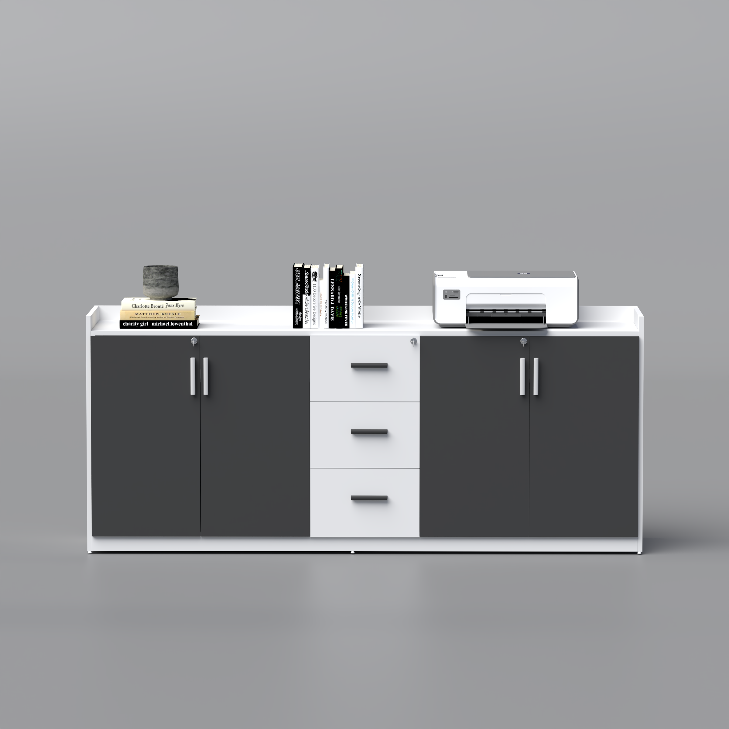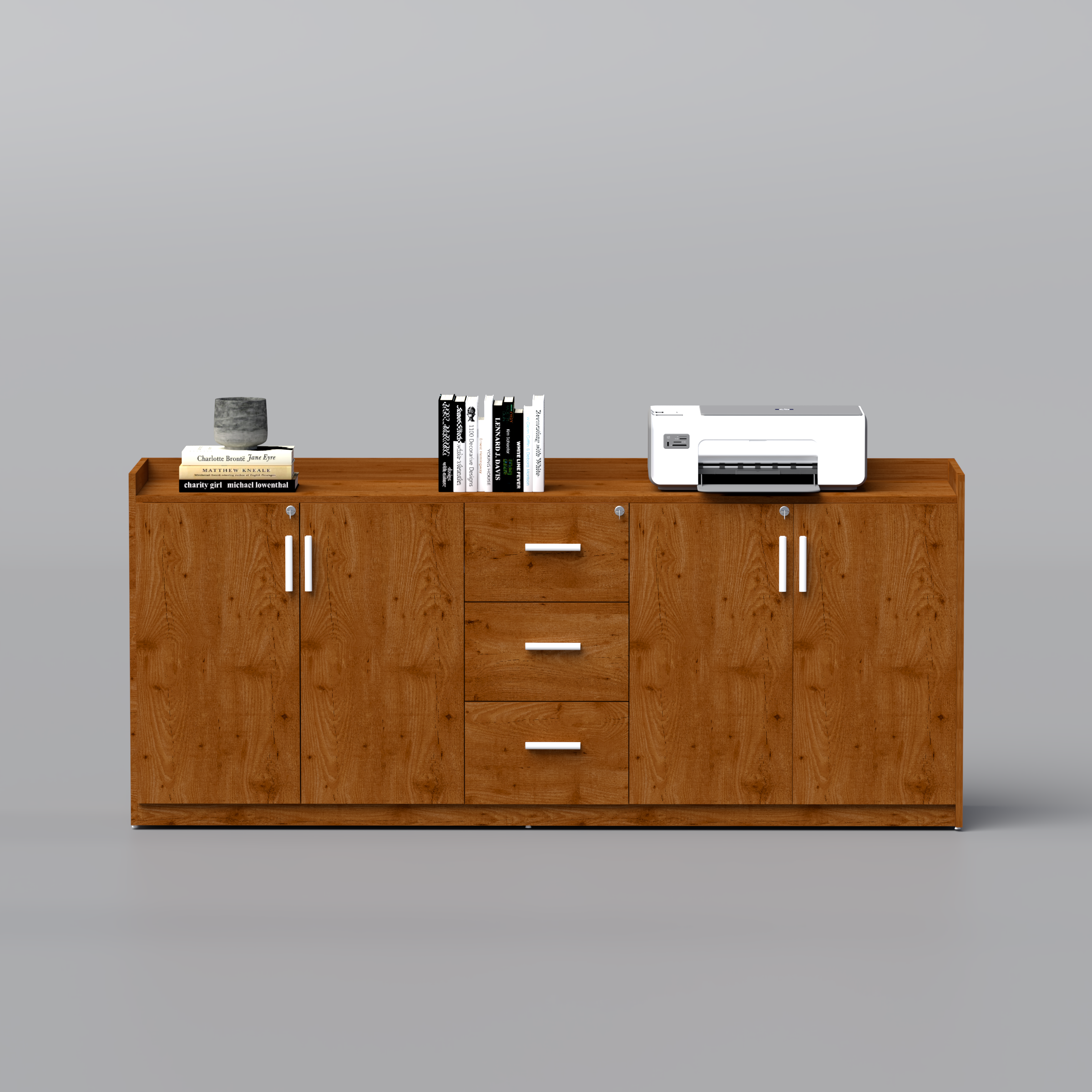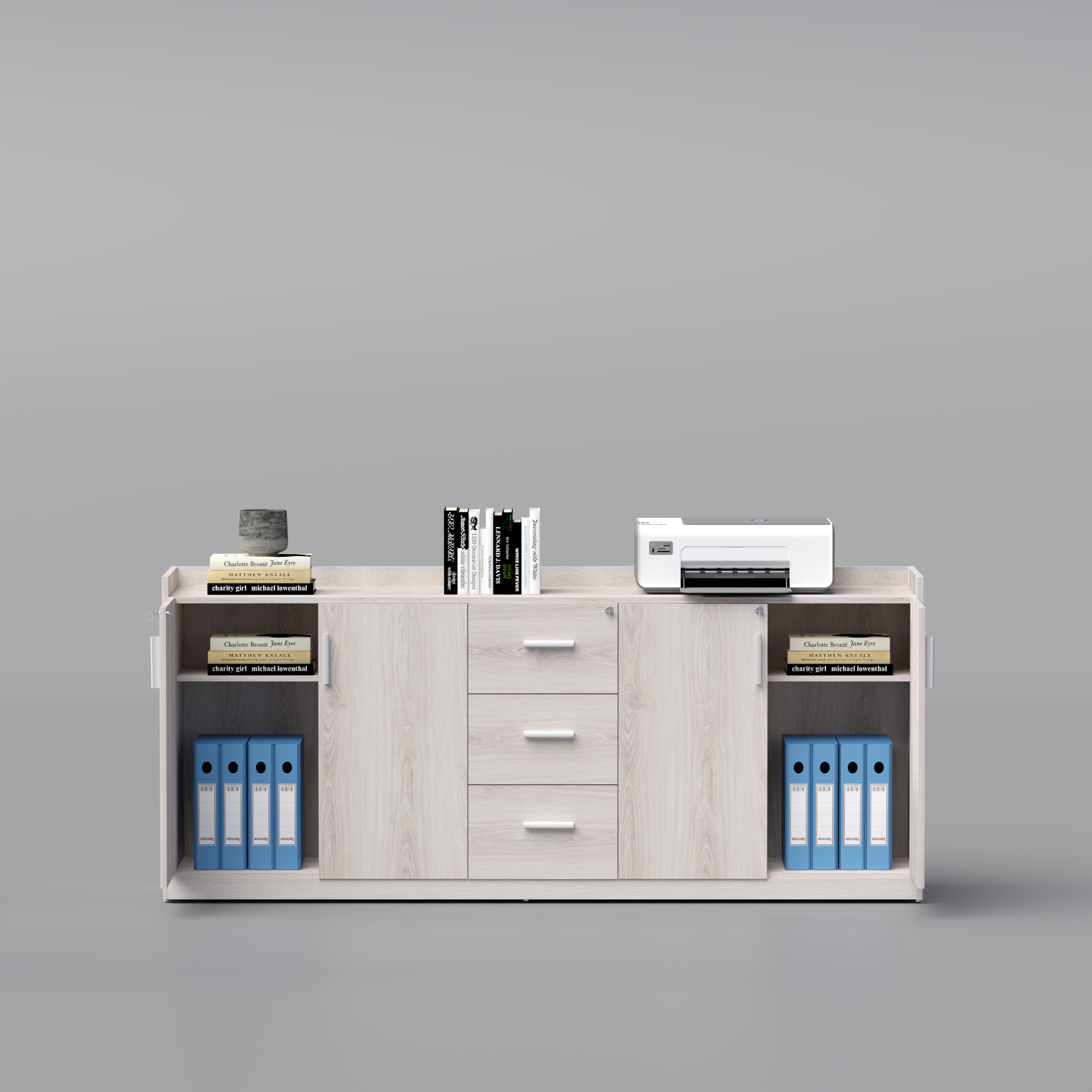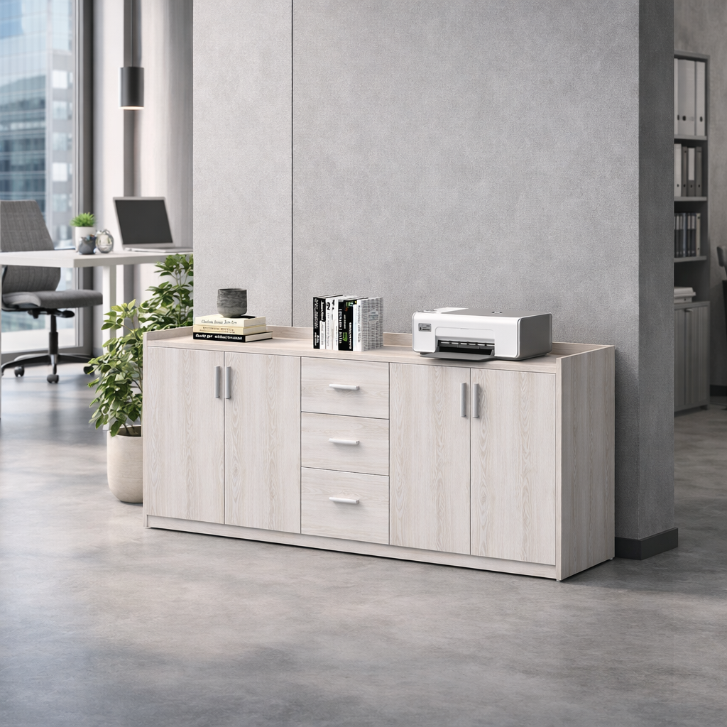 Its elongated horizontal profile establishes a sense of calm continuity, mirroring the rhythm of a well-organized office. The cabinet reflects a mindful design philosophy—practical, intentional, and precisely proportioned. Every compartment is carefully considered, ensuring storage remains intuitive rather than cluttered. Nothing is unnecessary. Everything has purpose.