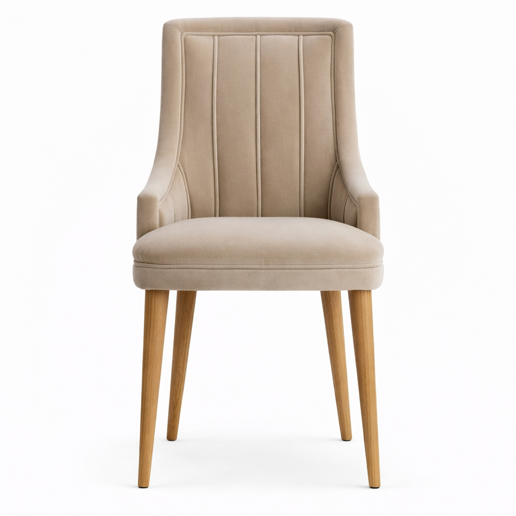 The RCP-039 restaurant chair is designed with a strong mild steel frame and wooden structure, finished with fabric upholstery for comfortable and durable restaurant seating.