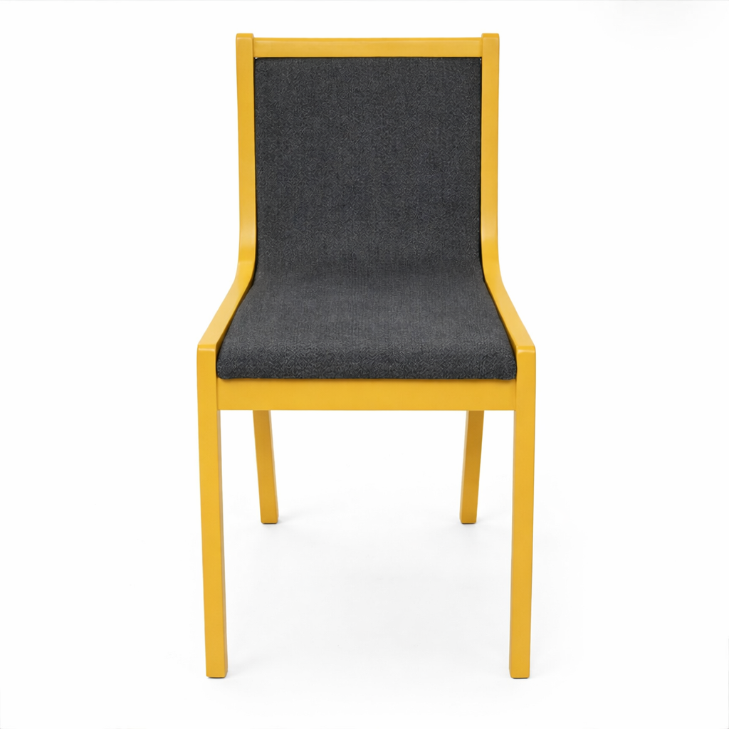 The RCP-067 restaurant chair features a durable mild steel frame with wooden structure and fabric upholstery, offering reliable comfort for everyday restaurant seating.