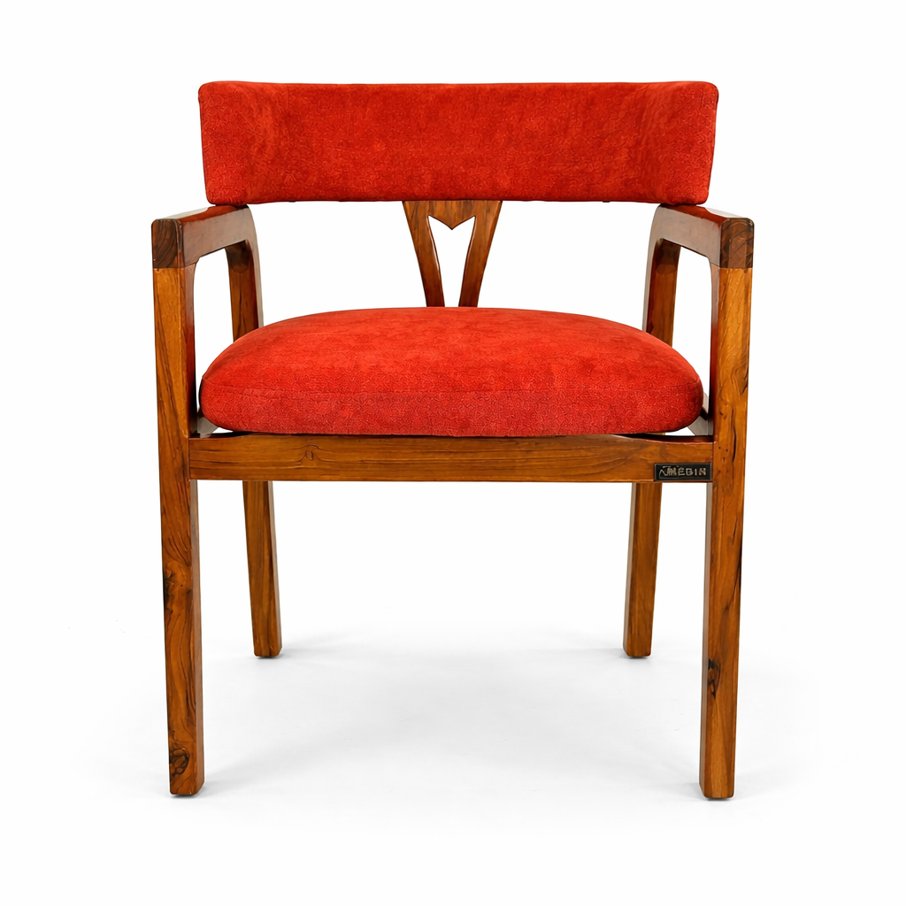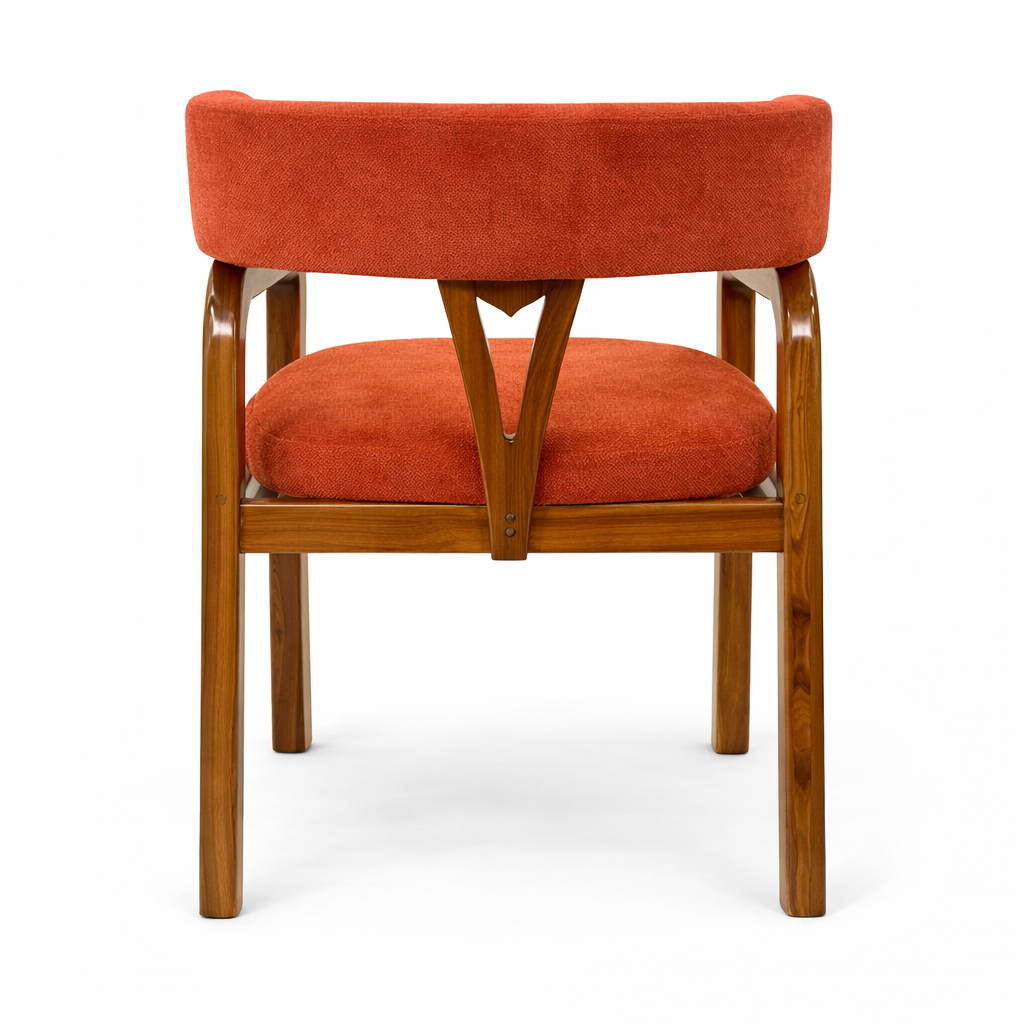 The RCP-068 restaurant chair is designed for durability and comfort, featuring a mild steel frame, wooden supports, and cushioned fabric upholstery suitable for professional dining environments.