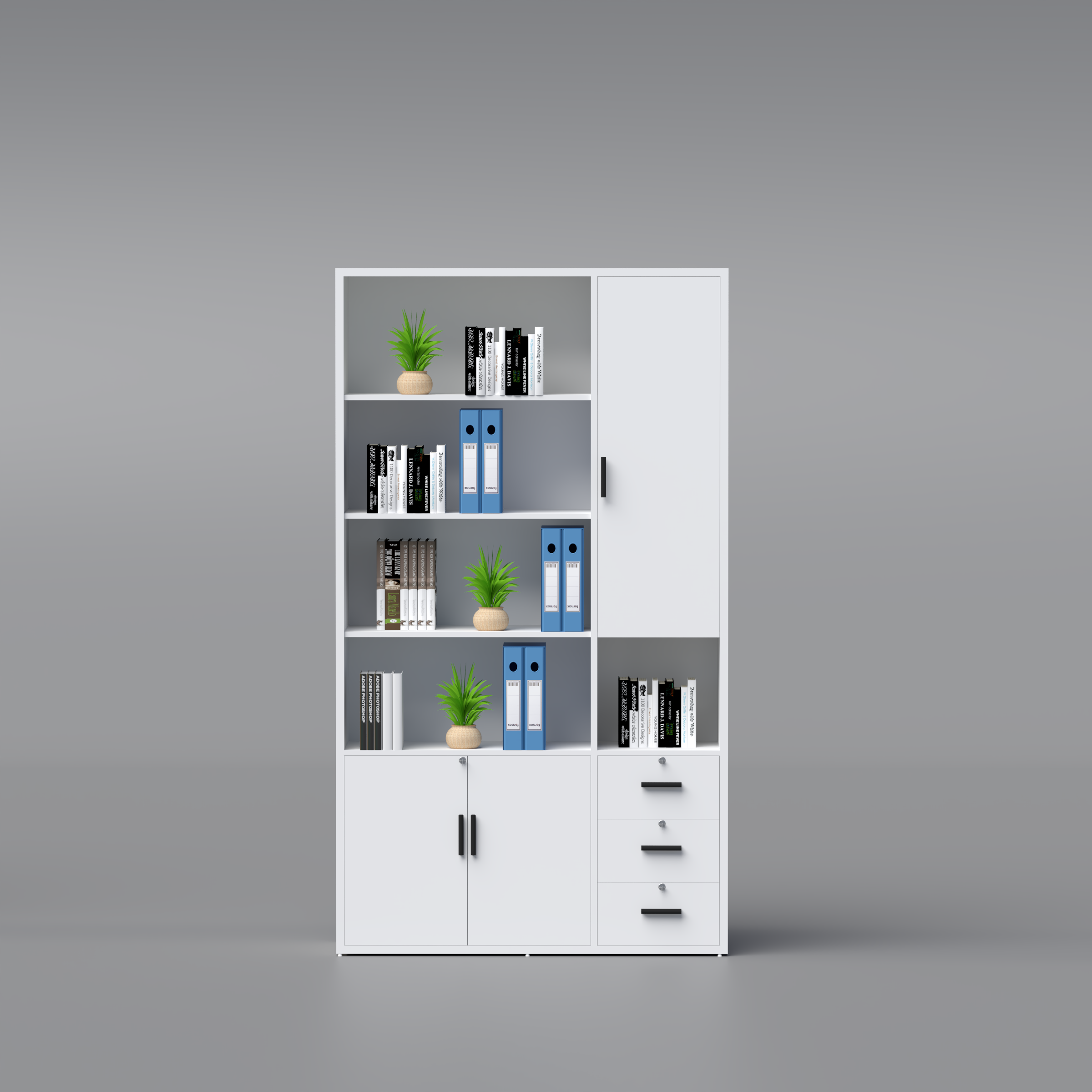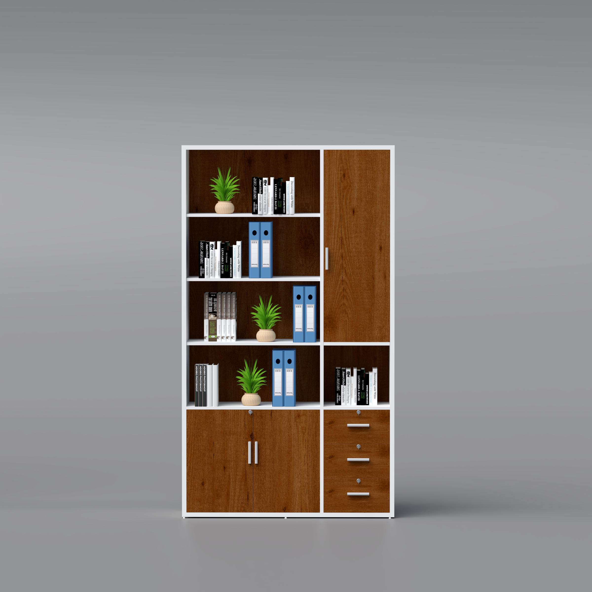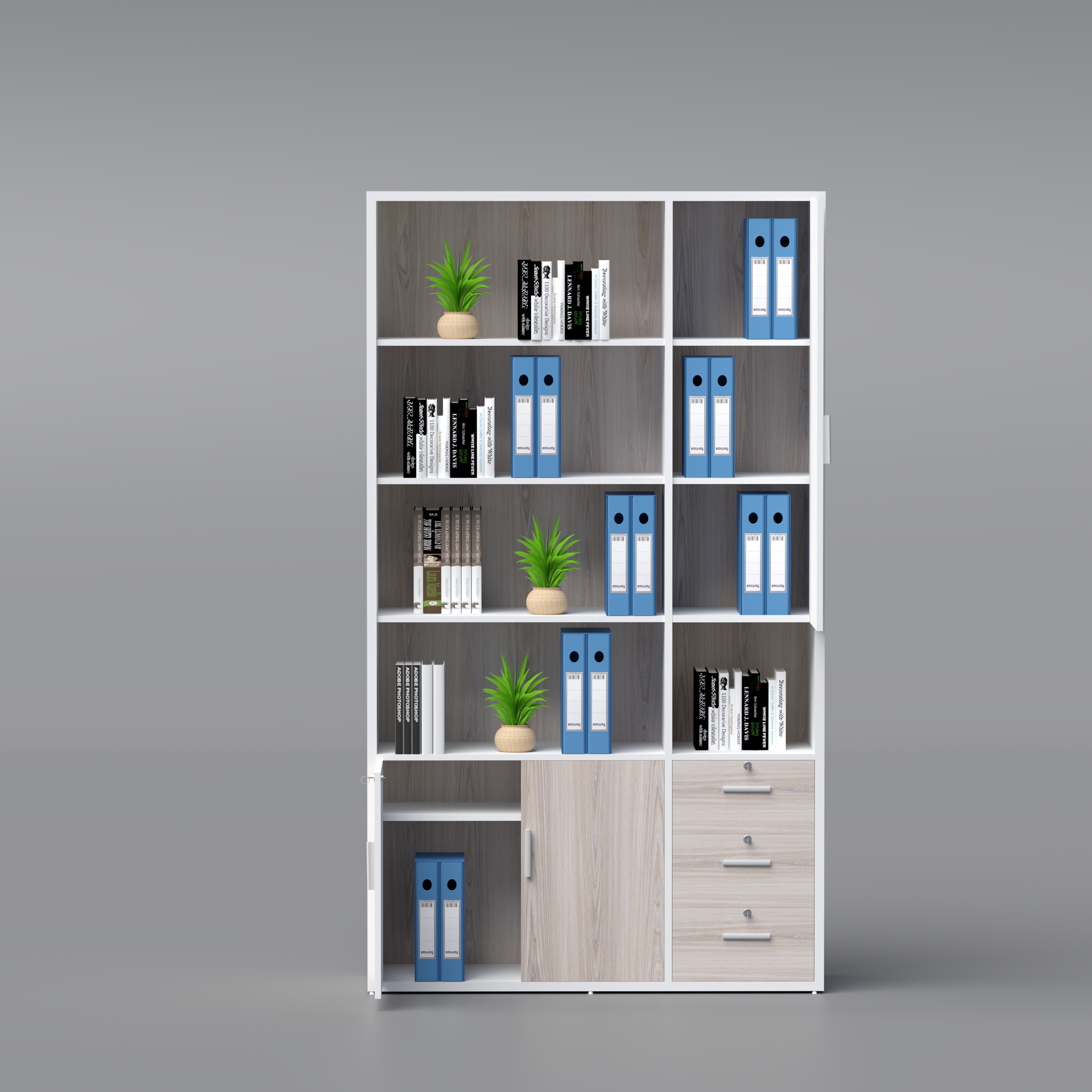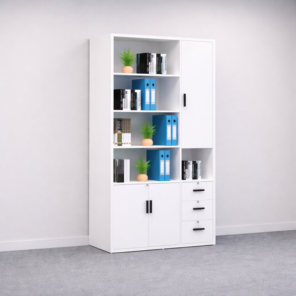 Well-proportioned compartments designed to accommodate books, binders, files, and essential office materials for an efficient workflow.