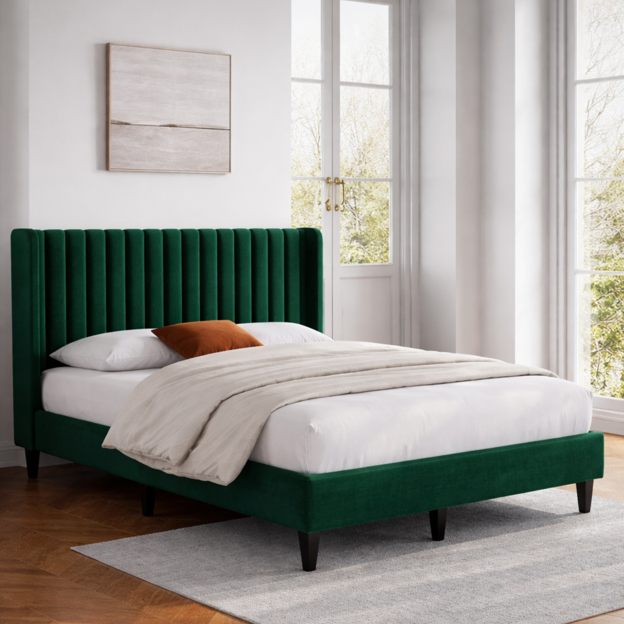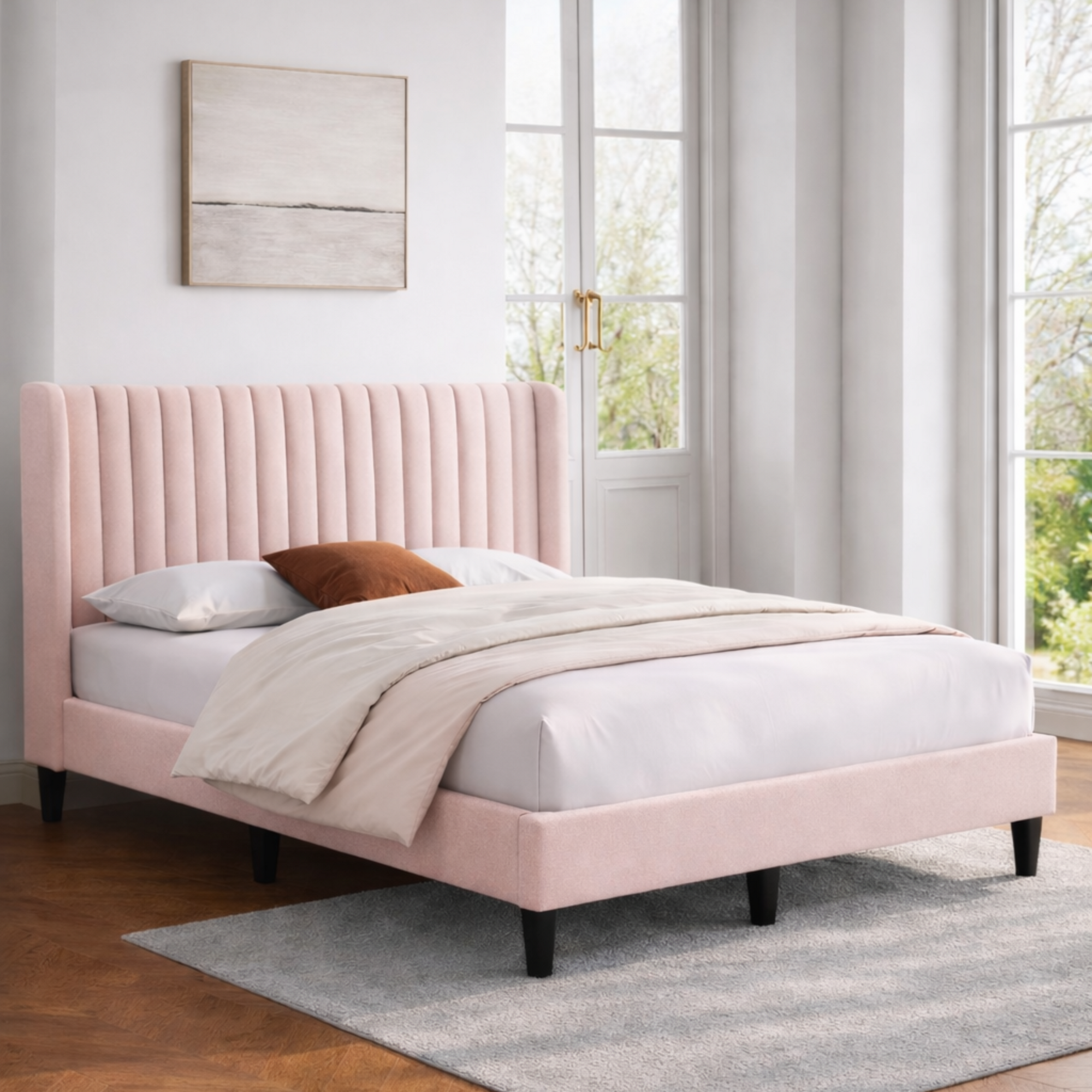 As morning light filters through tall windows, it settles quietly on the headboard. The velvet absorbs the light, turning color into a soft expression of peace. The bed never seeks attention; it earns it. In serene blue, tender baby pink, tranquil ivory, or gentle green, it feels like silence before the day begins. You sit, then lie back, and the world slowly loosens its grip.