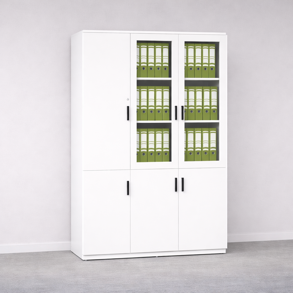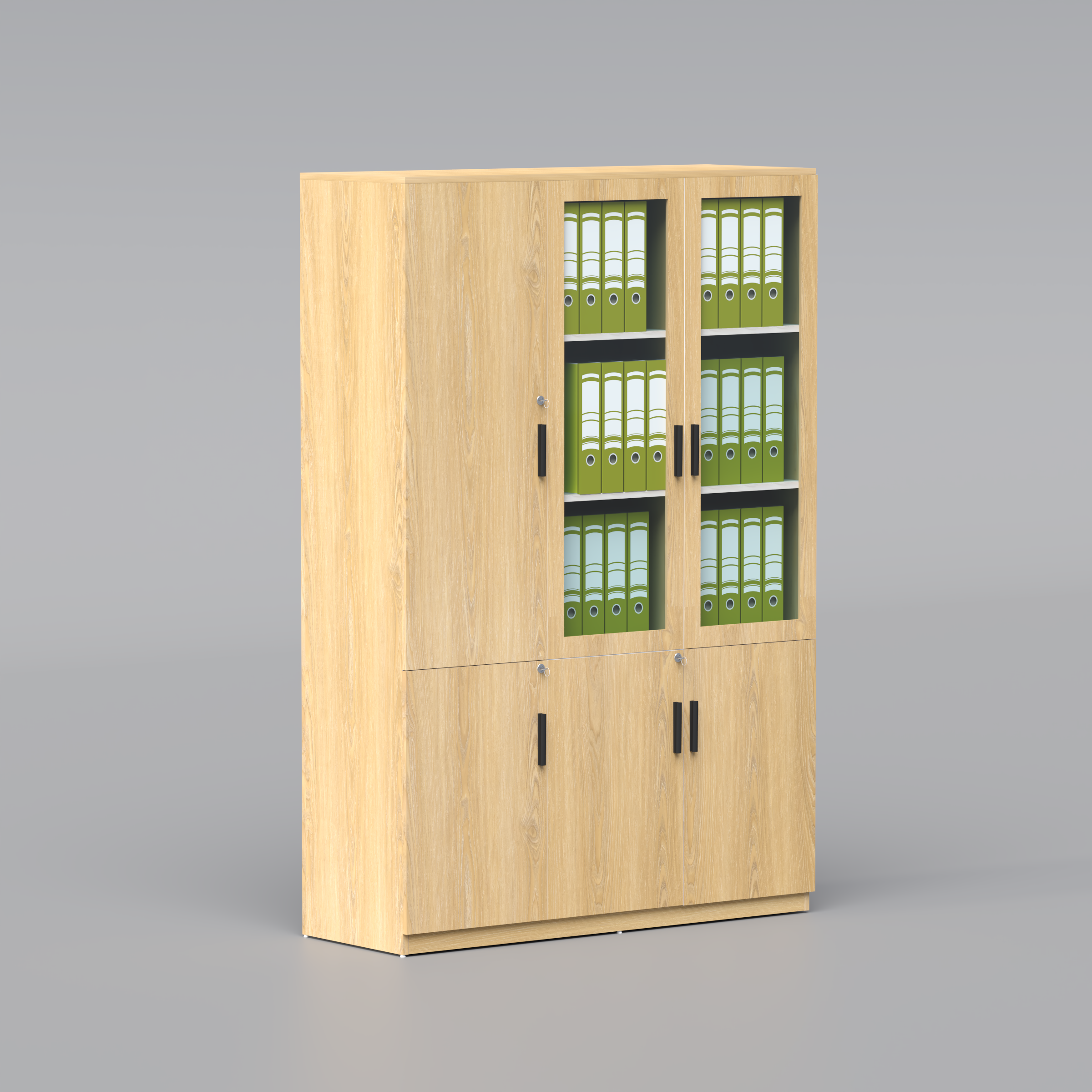 Lower cabinet compartments provide discreet and secure storage for confidential documents and sensitive materials.